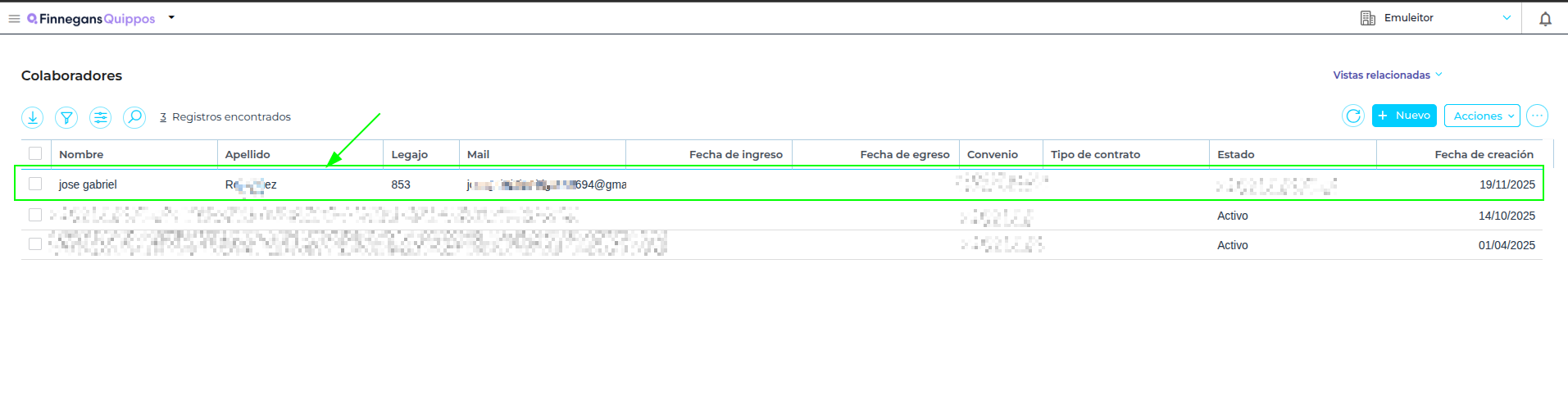 Seleccionar el registro del Colaborador al que se le desea asignar el permiso.