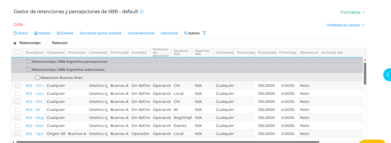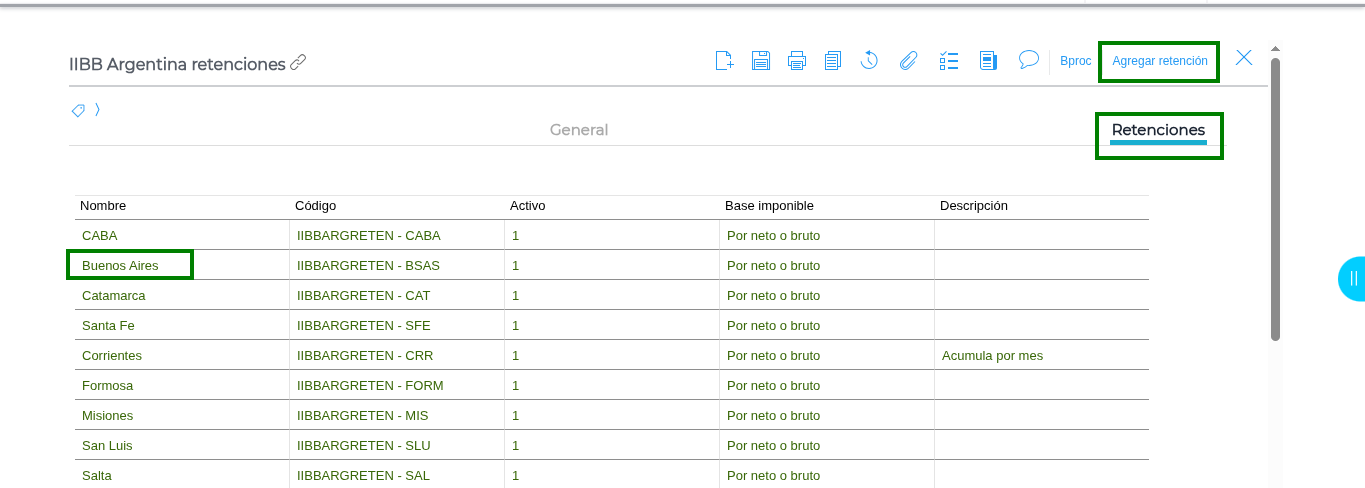 Concepto General: Puedes utilizar el tipo de retención “Buenos Aires” que viene de forma estándar en el sistema.