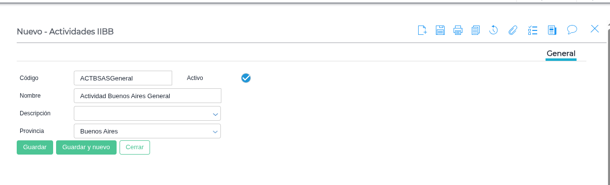 Se debe crear una actividad para Buenos Aires de Régimen General.