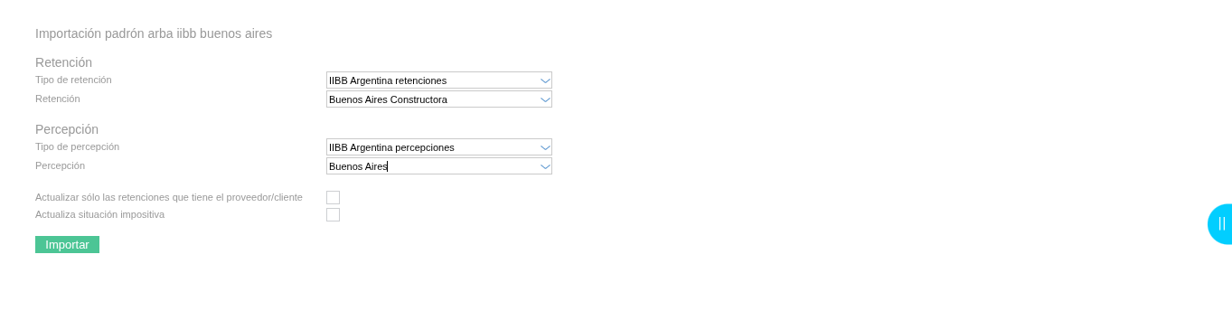 - Padrones: Al importar el padrón de ARBA, este debe actualizar ambos conceptos (General y Constructora). Aunque la alícuota sea la misma, esto garantiza que se guarde el dato asociado al código de actividad que corresponde.