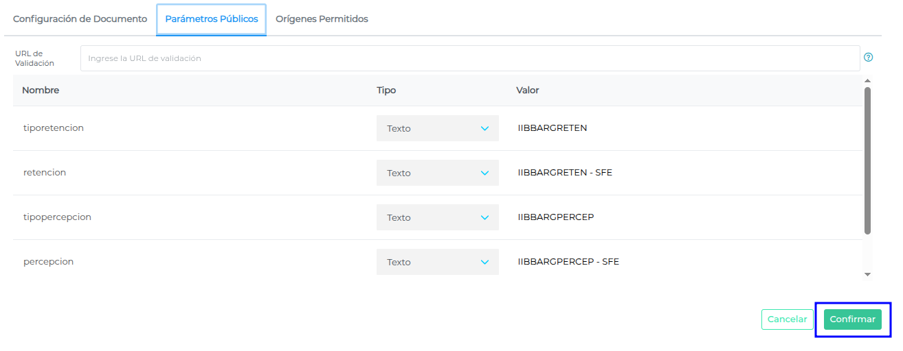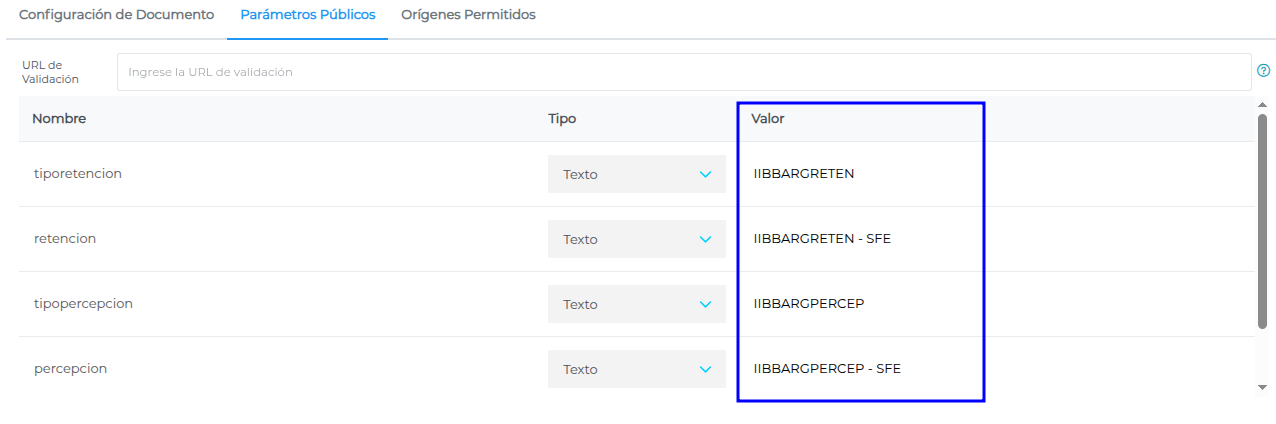 Dirigirse a la solapa Parámetros Públicos.