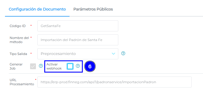 Una vez configurado esto, se abrirá una nueva vista en la cual se deberá activar el check Activar webhook.