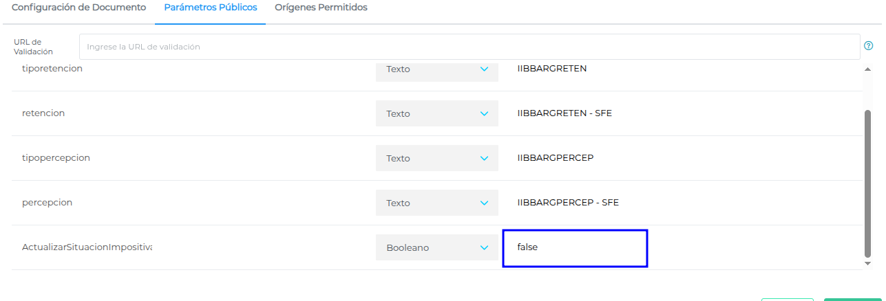 Por último, completar el campo ActualizarSituacionImpositiva con “true” o “false” según si es que quieren tener activo ese check.