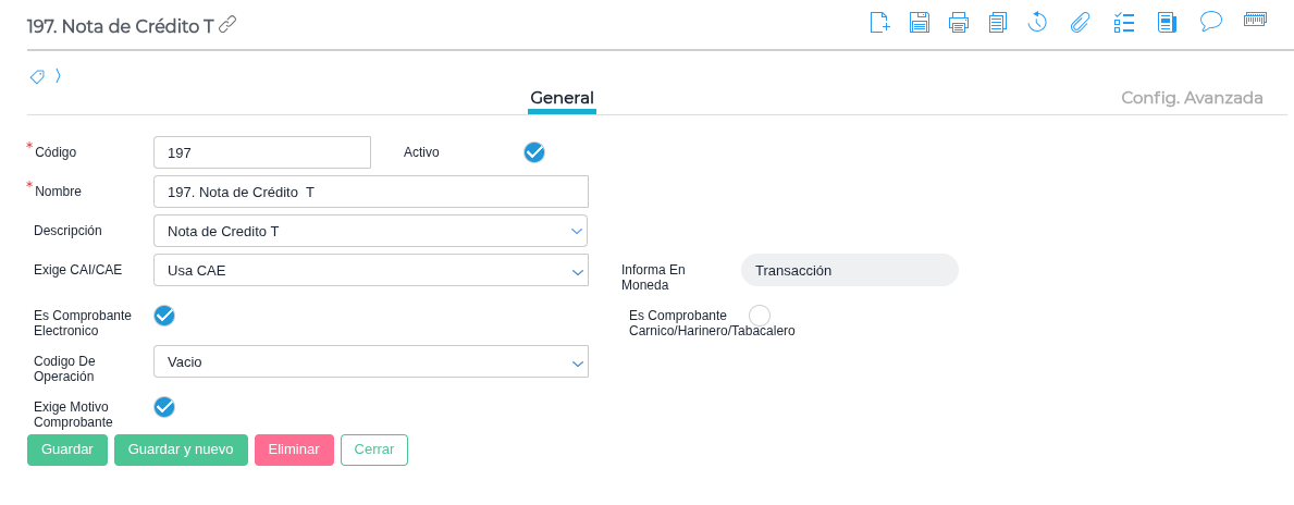 Código 197: Nombre: “Nota de Crédito T”.