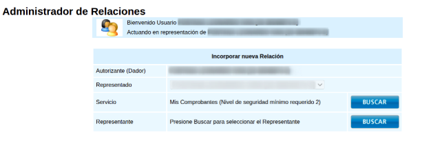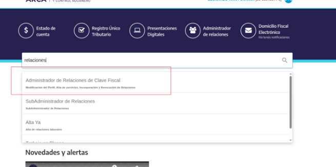 1- Acceder desde el menú al servicios “Administrador de Relaciones con clave fiscal”