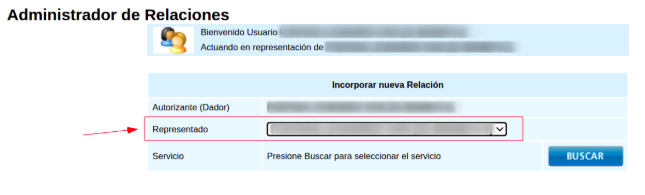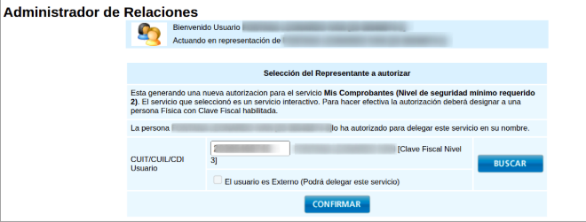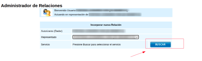 7- Presionar “buscar” e ingresar el CUIL/CUIT del usuario al que se debe delegar el servicio.