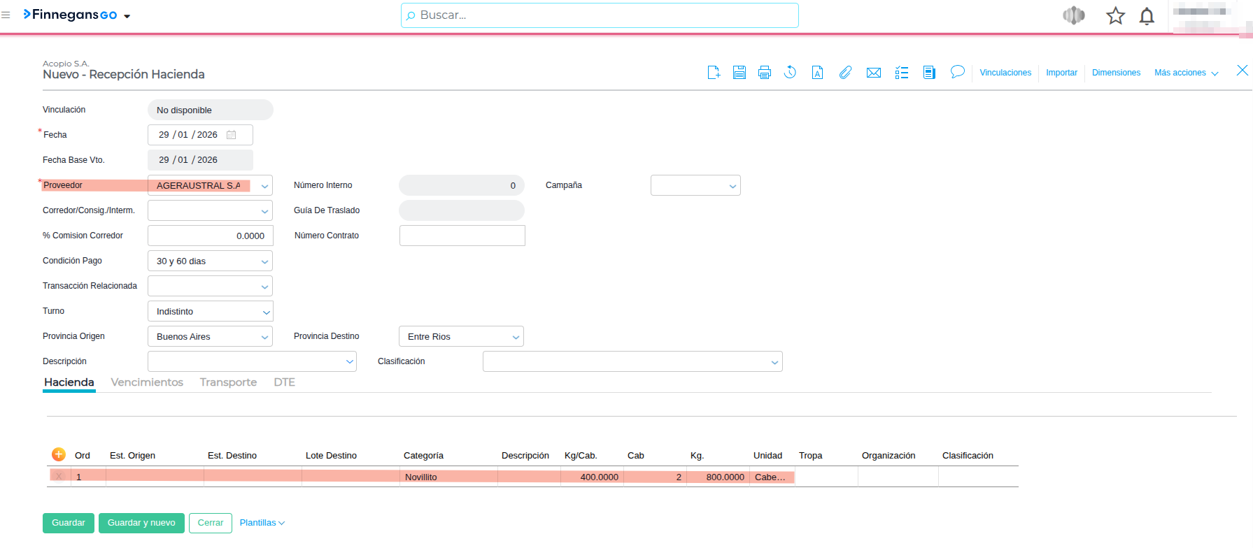 Impacto: Es fundamental recordar que el alta de los animales en el stock solo ocurre en la Recepción, mientras que la deuda con el proveedor y el crédito fiscal se generan en la Liquidación.