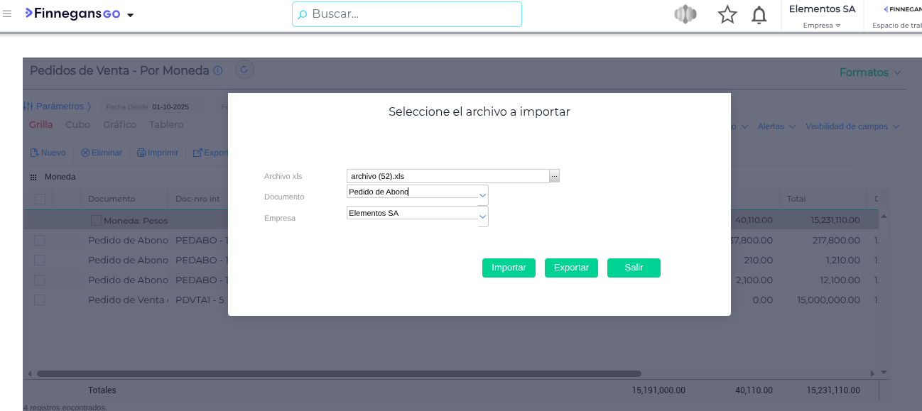 - Una vez completado el archivo de excel, haz clic nuevamente en “Importar” e indica el archivo y el tipo de documento que deseas crear.