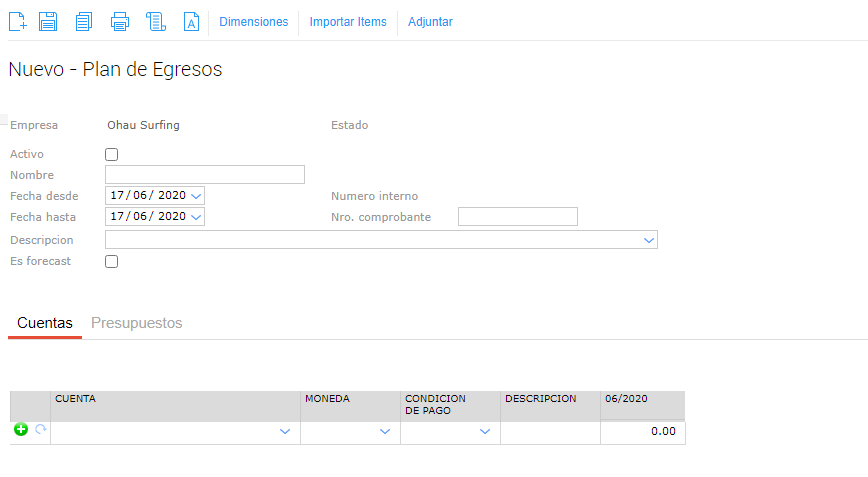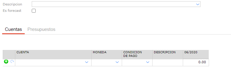 - Activo: es un check box que indica si el presupuesto se encuentra o no disponible para su utilización en otras transacciones.