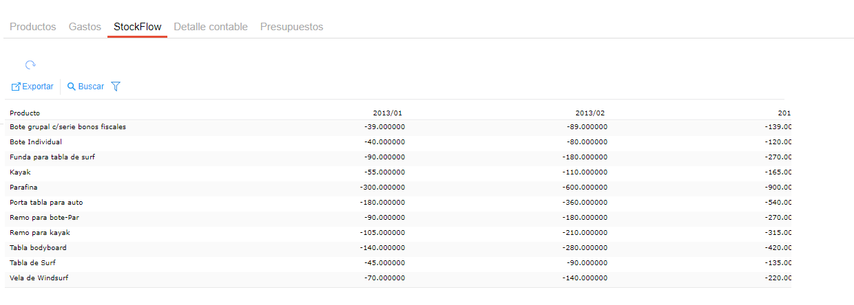 Muestra los movimientos de las cuentas generados por los planes asociados al presupuesto, mes por mes.