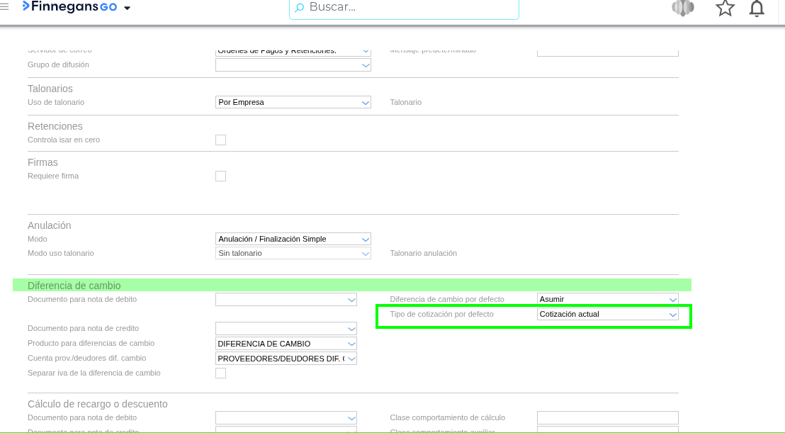 Ingresa al documento a configurar y busca la sección junto al apartado de “Diferencia de cambio”.