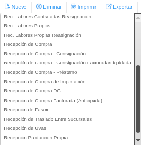 El botón “Nuevo” agrega un nuevo punto de entrada al flujo estándar de Recepciones.