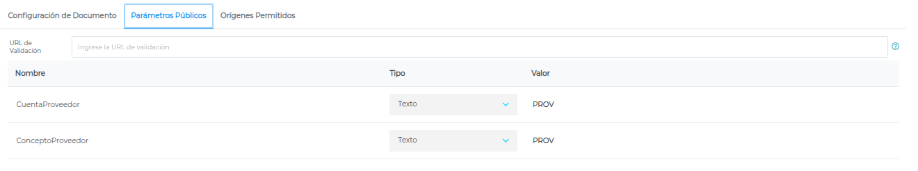 Parámetros Públicos: