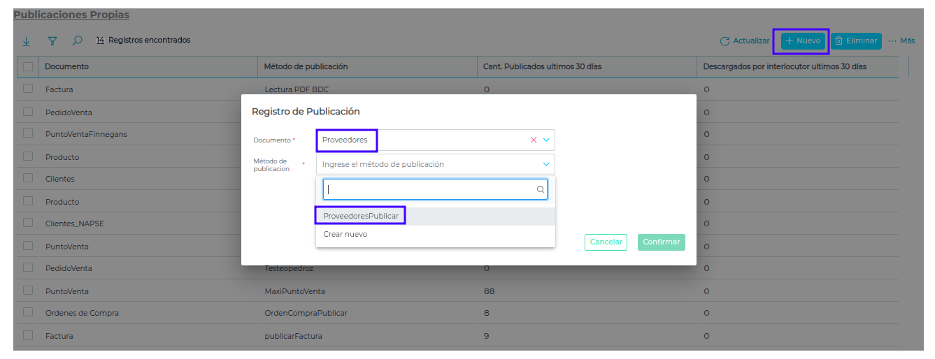 3. Configuración del Método ProveedoresPublicar