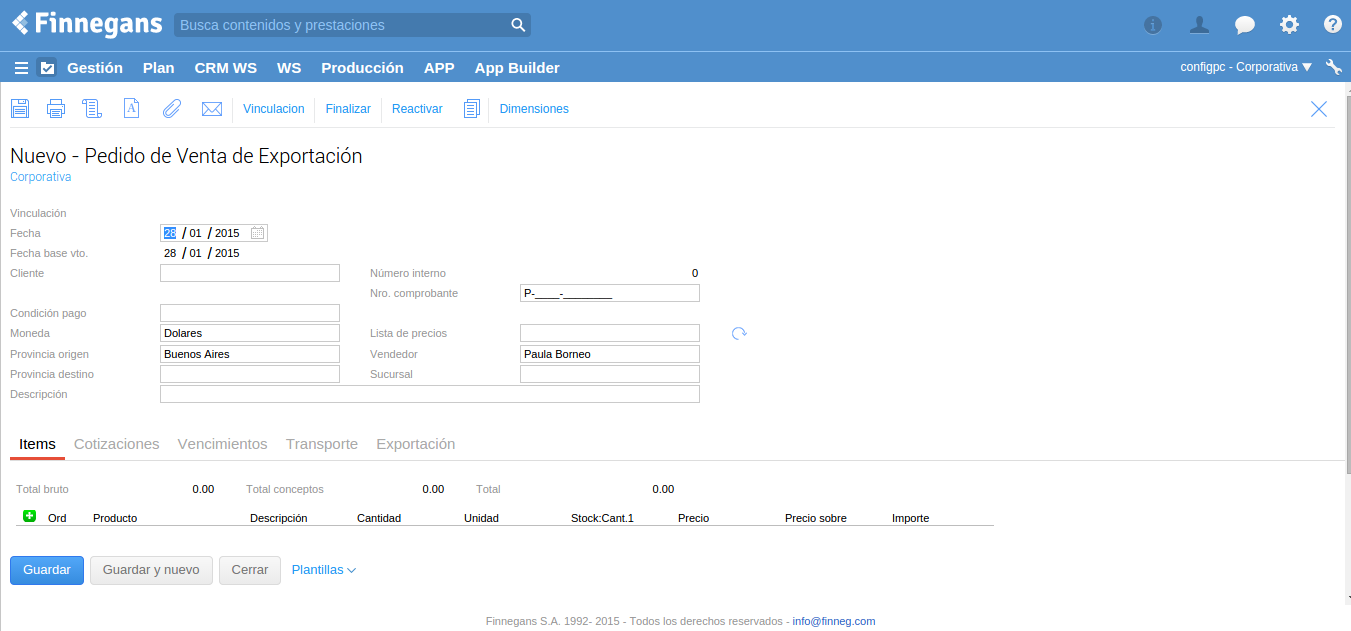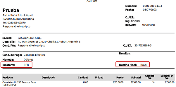 La impresión del pedido de exportación es la Factura proforma que se envía al comprador.