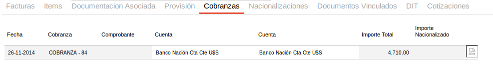 Este documento en el sistema centraliza toda la documentación de la exportación (Facturas,Cobranzas, DIT, Provisiones, etc) se puede ir completando a medida que se van obteniendo los datos.