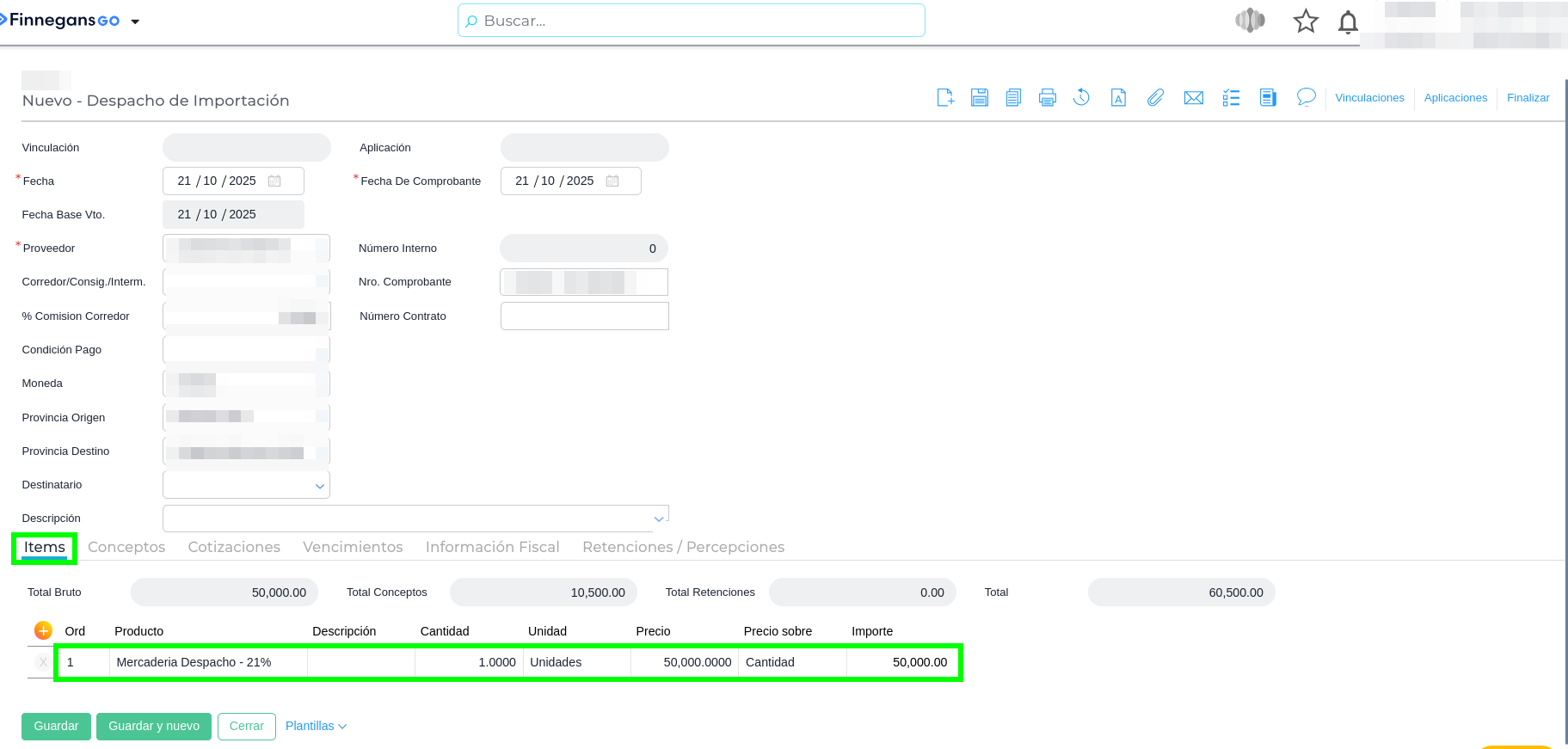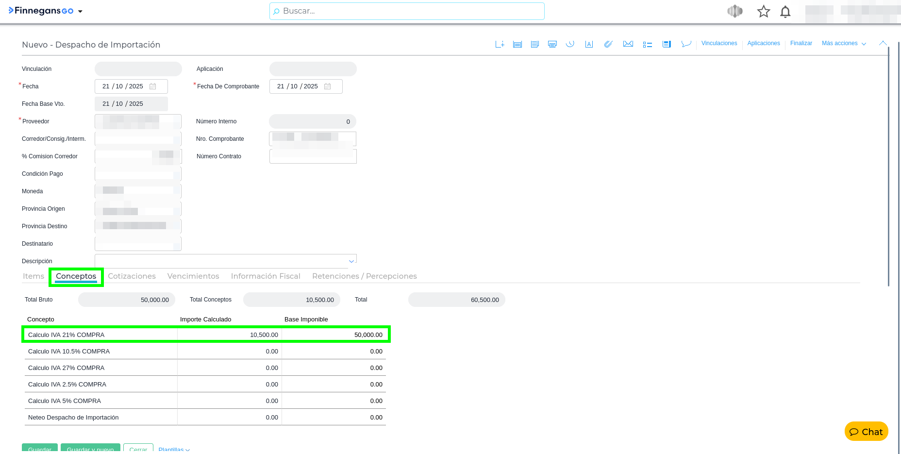 - Realiza un nuevo Despacho de Importación, carga el producto y verifica que el sistema ya calcule el IVA correctamente.