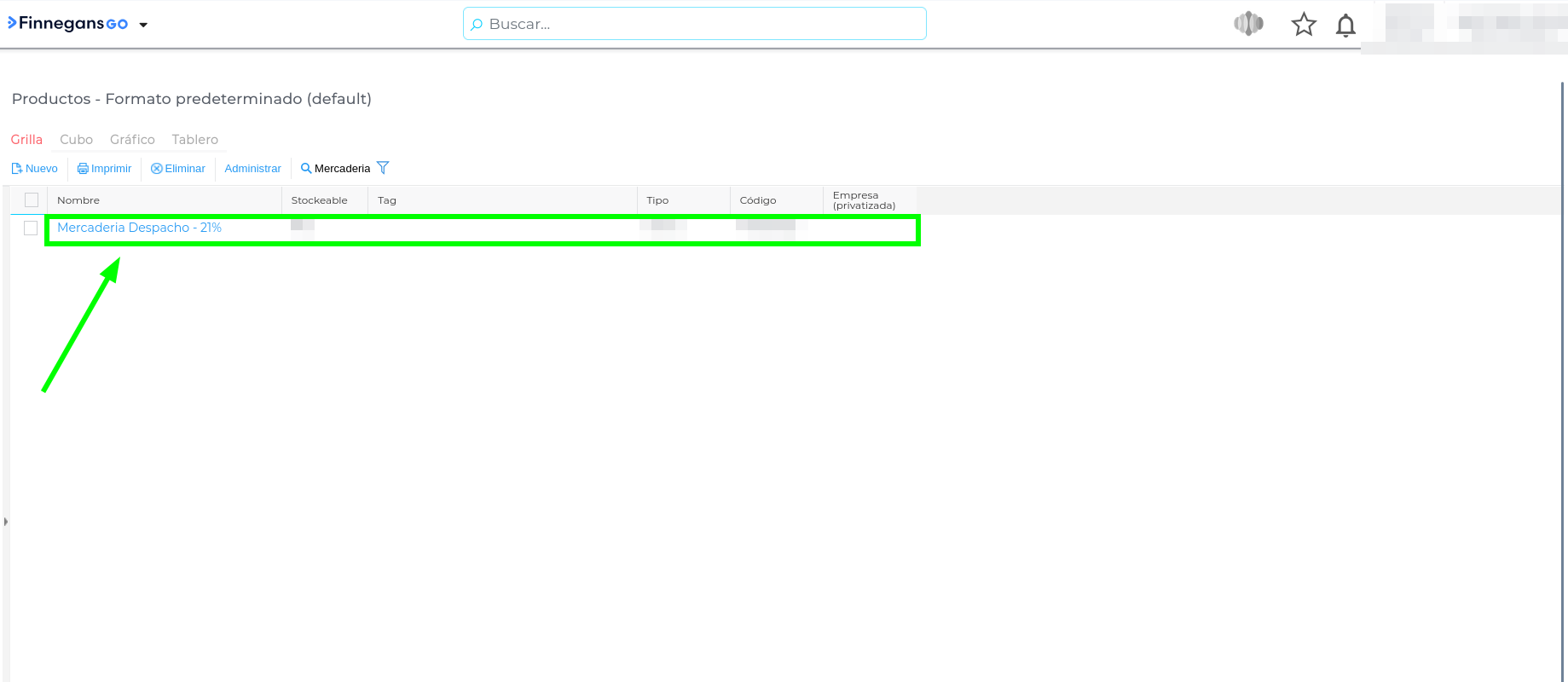 - Dirígete al maestro de Productos y abre la ficha del producto que estás utilizando en el Despacho de Importación.