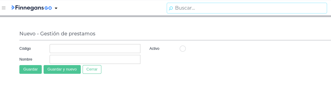 Completar Datos: Cargar la información requerida en la ficha, principalmente los campos Código y Nombre. Asegurarse de que el check “Activo” esté marcado.