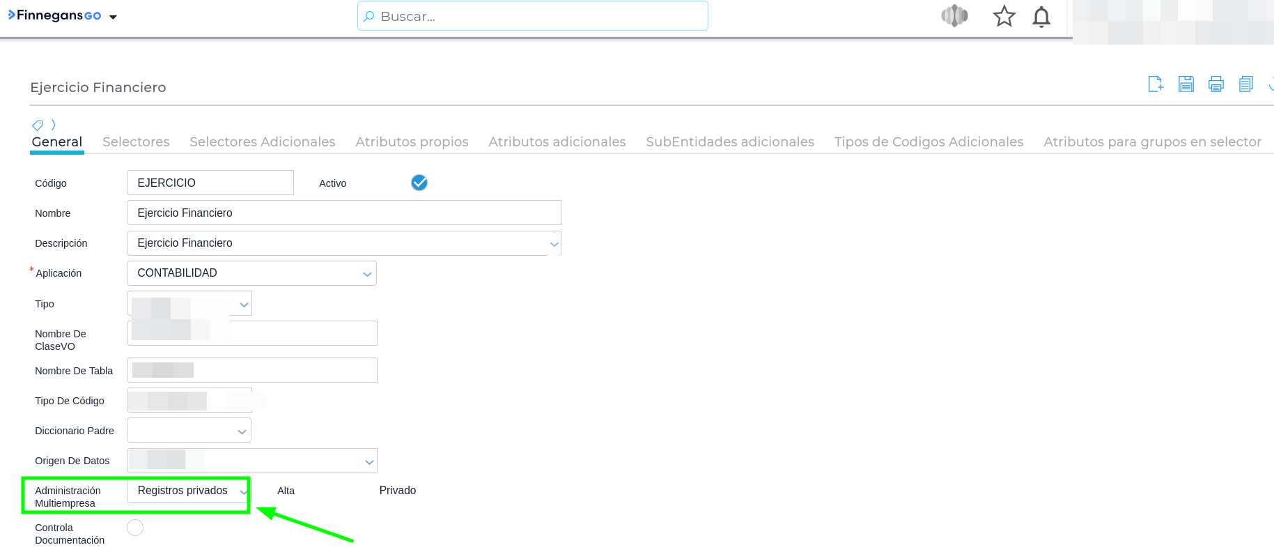 - En el campo Administración Multiempresa, cambia la opción a “Registros privados”.