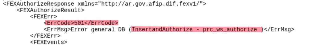 Causa: Caída de conexión o saturación en la base de datos del Webservice de Exportación (WSFEX). El procedimiento almacenado
