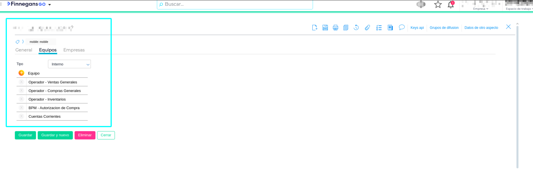 Busque el equipo habilitado para el proceso (siguiendo el ejemplo del caso: “Empresa” o “Permisos para funcionalidad básica”).