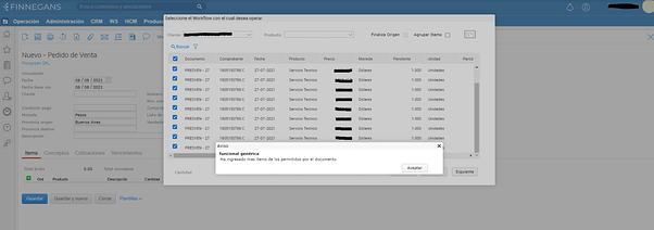 Error "Ha ingresado más ítems de los permitidos por el documento" al traer registros desde el asistente