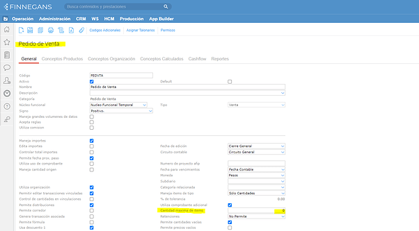Configurar en Tipos de documentos la cantidad máxima permitida de ítems