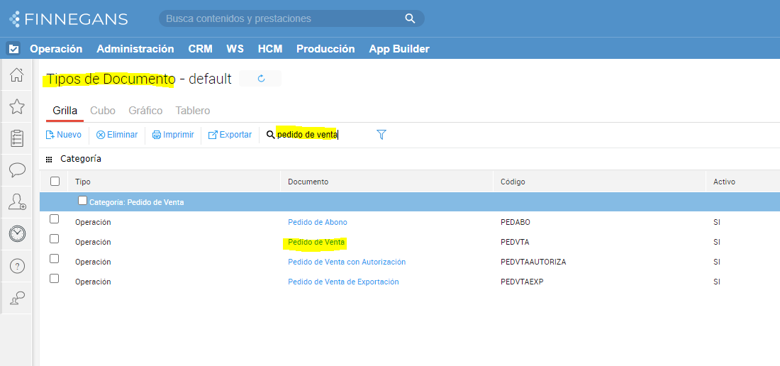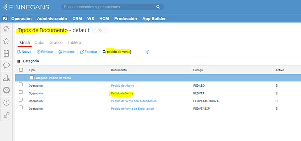 2. Buscar el documento en cuestión, para este caso “Pedido de venta”: