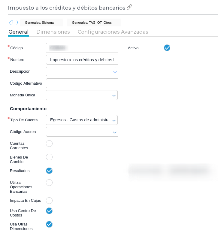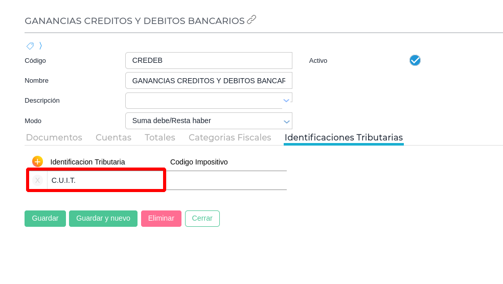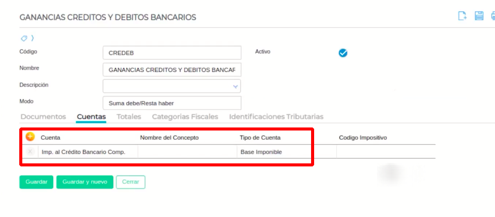 - También va a ser necesario tener configurada una cuenta de “Impuestos a los Créditos y Débitos Bancarios”
