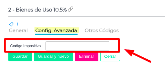 Ir a la solapa “Config. Avanzada” y configurar el código impositivo.
