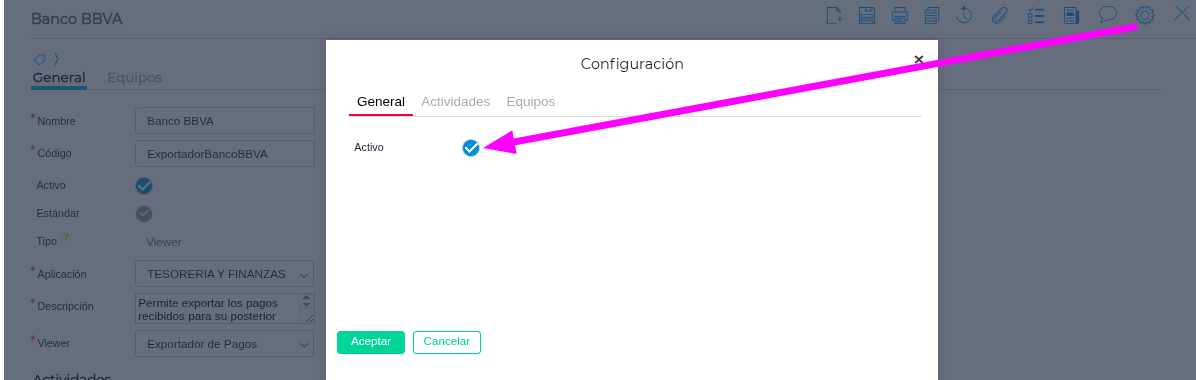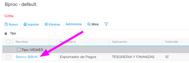 Activación de Funcionalidad de exportación BBVA (Bproc)