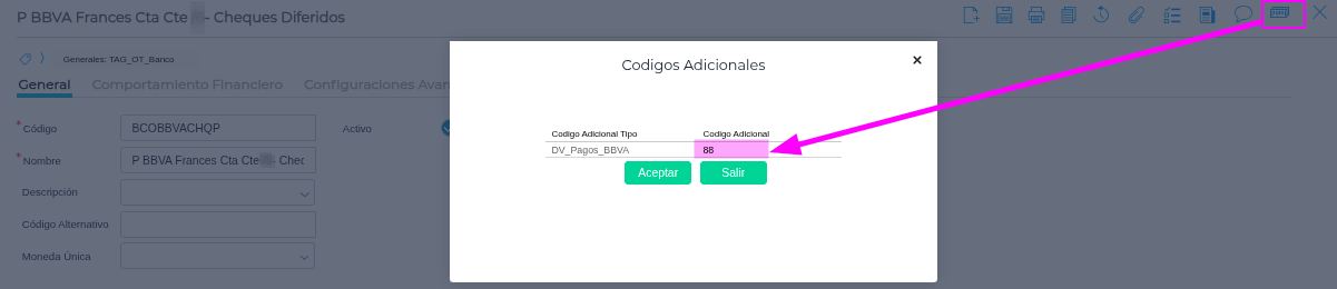 En la solapa Tipos de Códigos Adicionales, crear un nuevo código adicional con el valor: