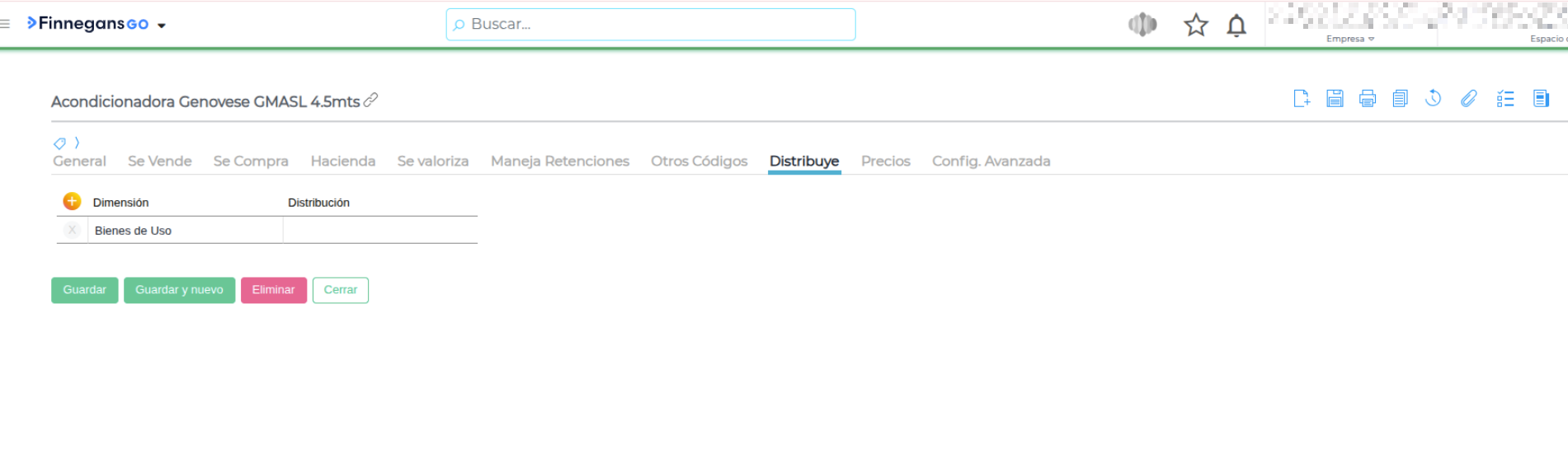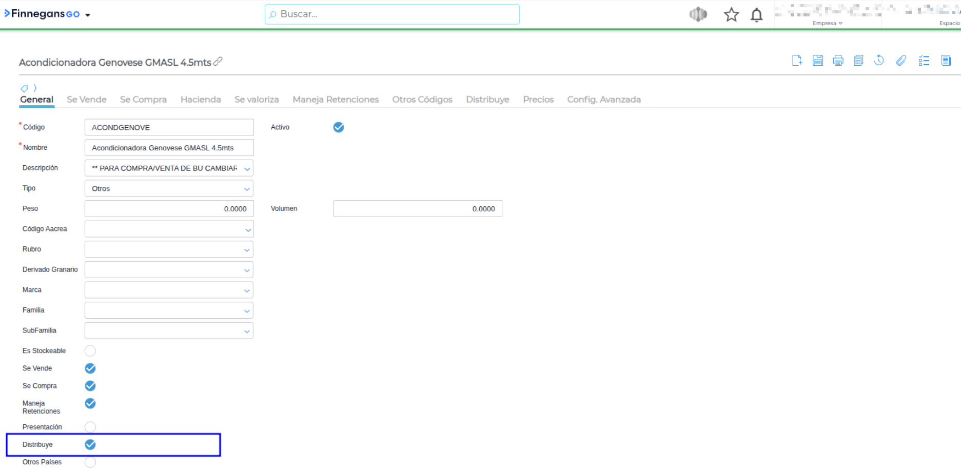 Habilitar Distribución: En la solapa general o de configuración, localiza y marca el check “Distribuye”.