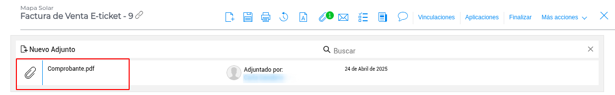 También se generará el pdf del comprobante que quedará adjunto a la transacción.