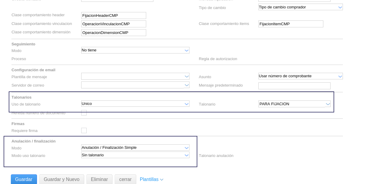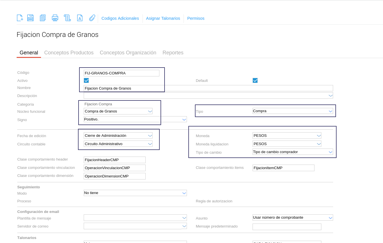 Talonarios: Podes utilizar uno único para toda la base o crear talonarios por empresa, pero siempre debes crearlo en el maestro de “Talonarios” y agregarlo al tipo de documento. Se recomienda tener talonarios separados por tipo de fijación (compra o venta).