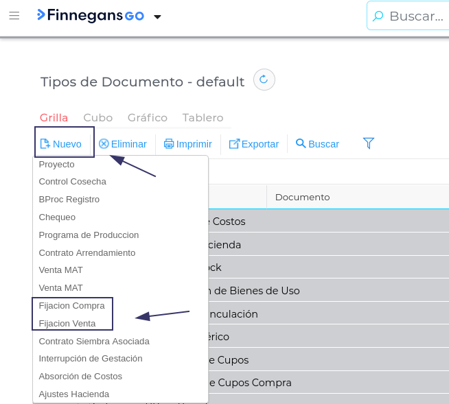 Nos dirigimos al botón Nuevo → Seleccionamos “Fijación de compra” o" “Fijación de venta” según corresponda