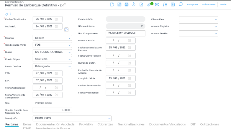 - Dentro del Permiso de Embarque, navegue a la solapa DJVE (Declaración Jurada de Venta al Exterior).