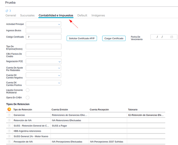 - Porcentaje: debe ser 0 para que no retenga nada.