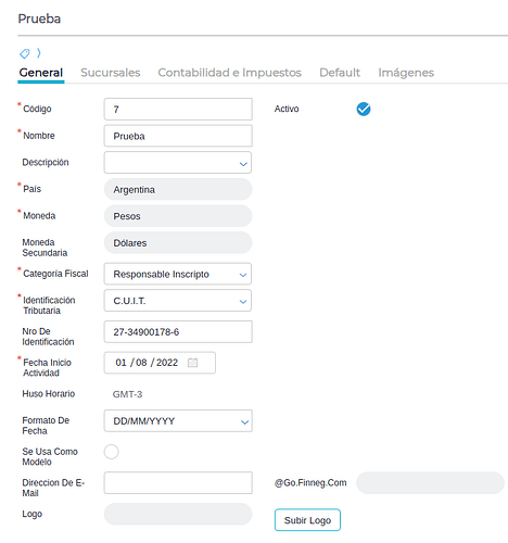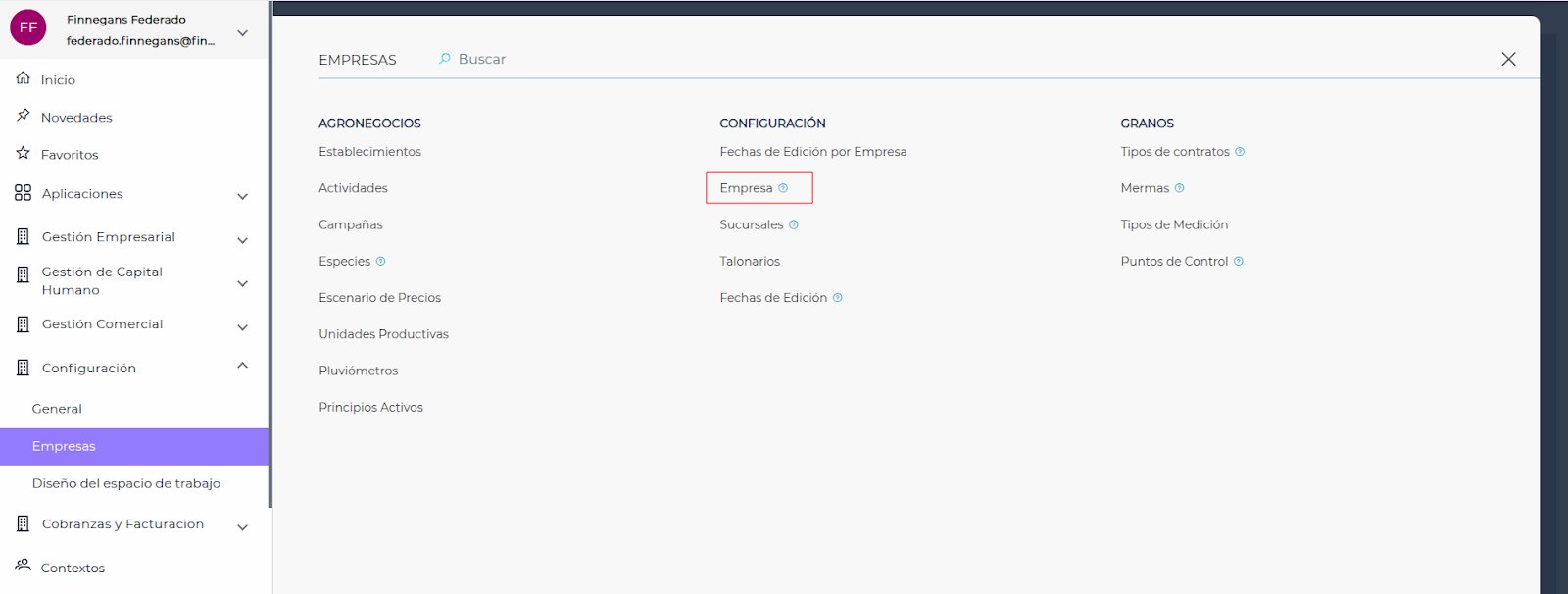 Gestión empresarial → Configuración → Empresas → Configuración → Empresa