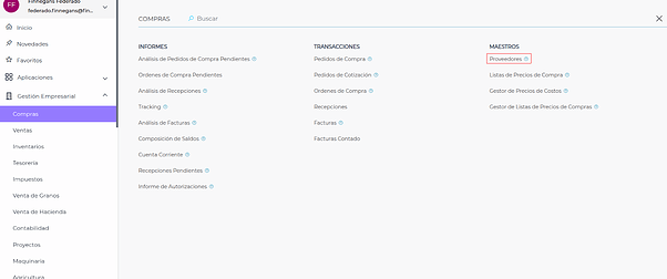 Gestión empresarial → Impuestos → Admin. Retenciones y Percepciones por Contribuyente
