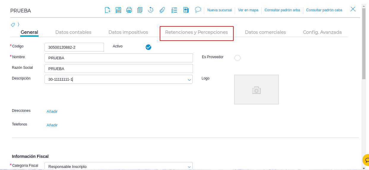 Seleccionar el proveedor a configurar y dirigirse a la solapa “Retenciones y Percepciones”.