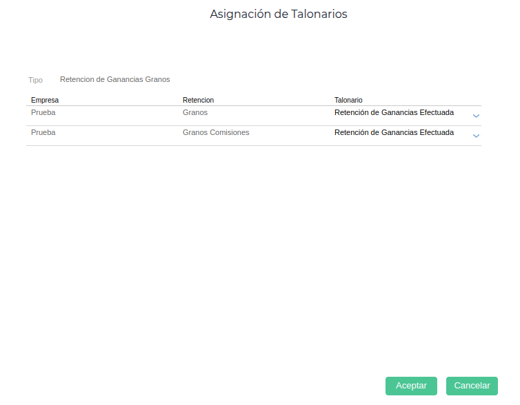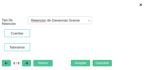 Nombre: Representa el nombre del Tipo de Retención que se está creando. En este caso “Granos”.