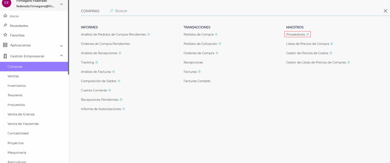 Ruta: Gestión Empresarial → Compras de Granos→ Liquidaciones → Liquidación