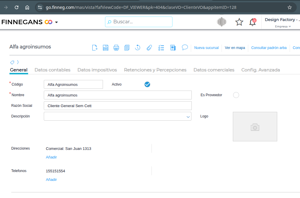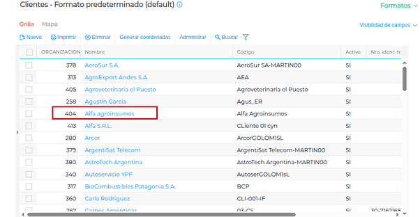 {ID del registro}. Para este ejemplo, si queremos visualizar el cliente Alfa agroinsumos, el valor es 404.