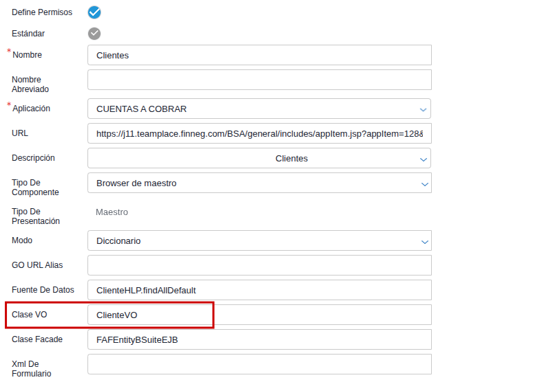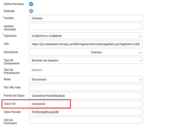 ClaseVOobtenemos el parámetro{ClaseVO}. En este caso, el valor es ClienteVO.