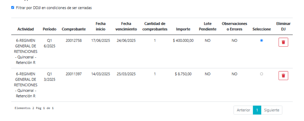 Seleccionar la DDJJ correspondiente y proceder con el cierre.