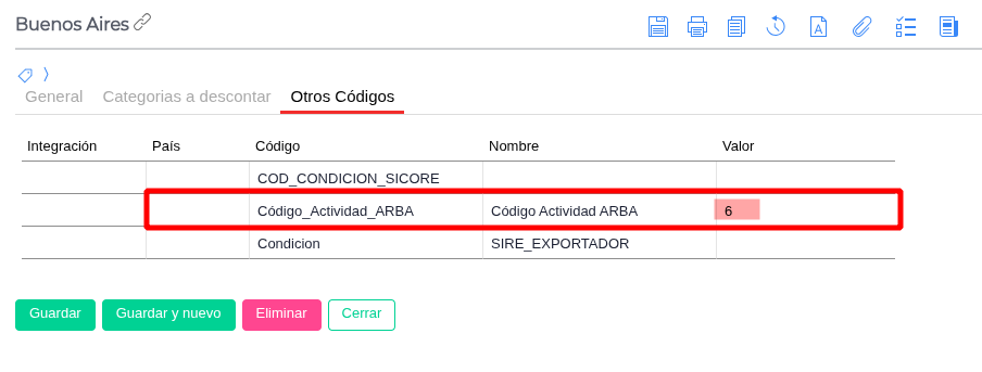 Ir a la configuración del Tipo de Retención y abrir la solapa “Otros Códigos”.