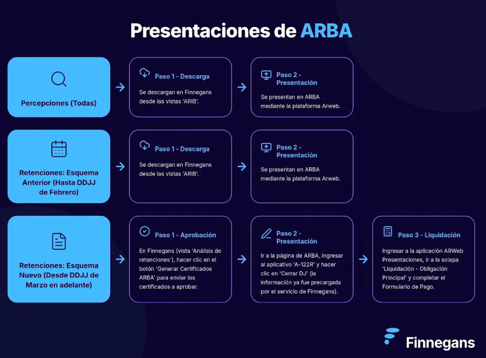(Aclaración: Las Percepciones de IIBB sí continúan bajo el esquema anterior, descargando el archivo TXT desde las vistas ARIB de Finnegans e importándolo en la web de ARBA).