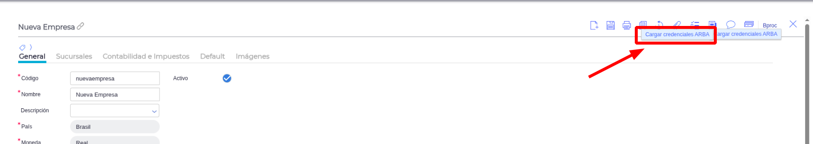 - Cargar credenciales ARBA: Habilita el botón en el maestro de empresas.